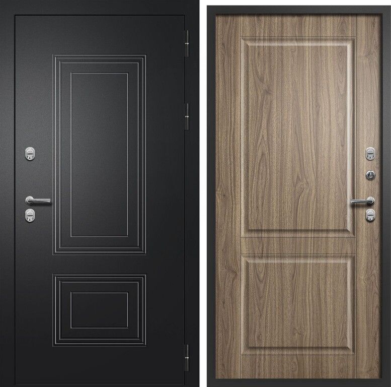 Непревзойденная мощь и комфорт. Дверь "Шторм ТЕРМО" — это настоящий бастион, защищающий ваш дом от холода, шума и незваных гостей. Благородная внутренняя отделка "Орех пекан" создает атмосферу тепла и уюта, а внешняя сторона с покрытием "Букле черный" выдерживает любые погодные испытания. Усиленный короб и терморазрыв гарантируют долговечность и энергоэффективность.